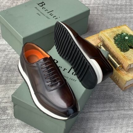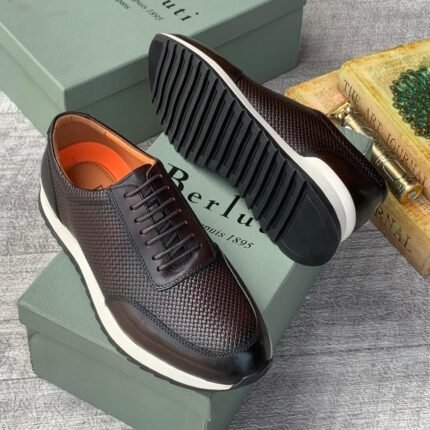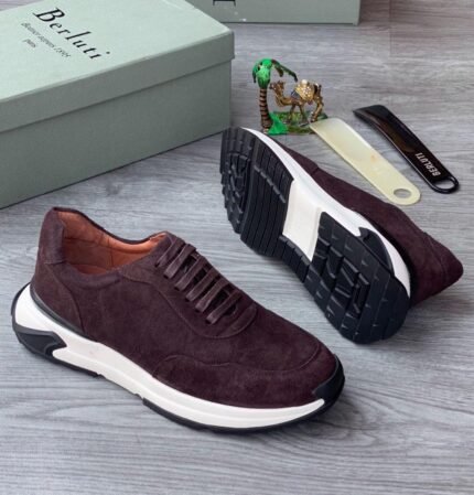 Berluti Full Grain Deerskin Leather Sneakers coffee brown