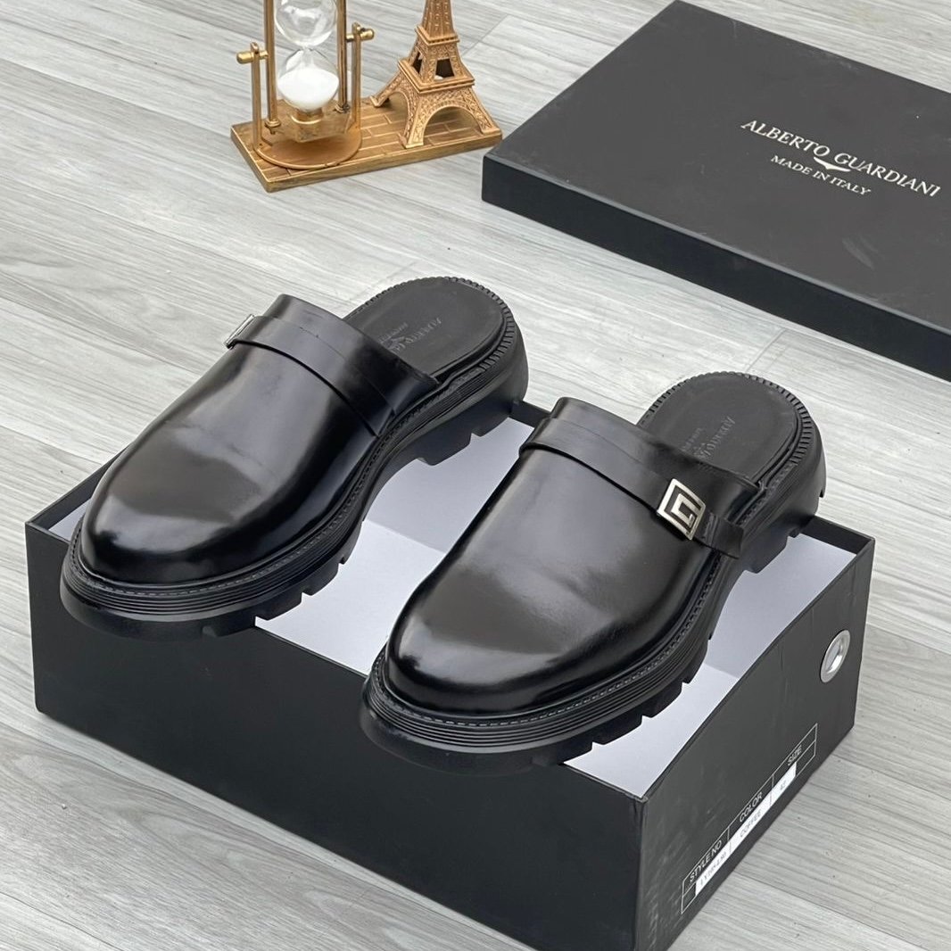 Home half-shoe Alberto Guardiani luxury leather mule with chunky sole black