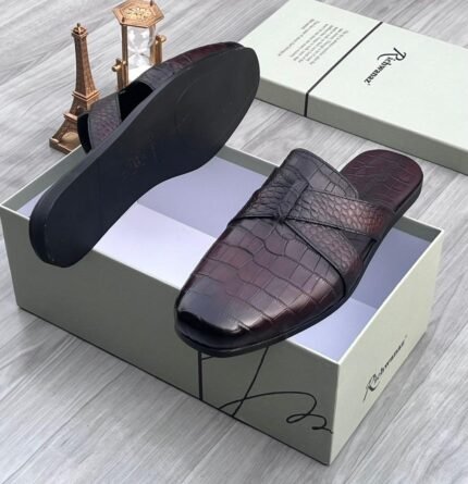 Billionaire crocs effect leather half shoe brown ₦110,000