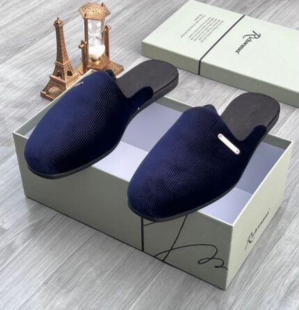 Richwanaz men’s velvet & leather mules navy blue