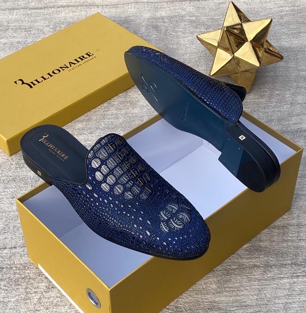 Billionaire crocs effect leather half shoe blue