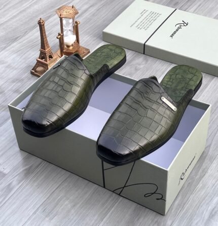 Billionaire crocs effect leather half shoe green ₦110,000