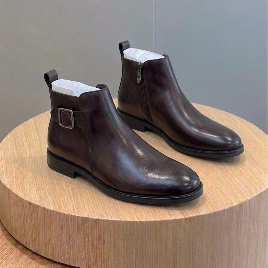 Be the first to review “Chelsea leather ankle boots side buckled coffee brown colour” Cancel reply