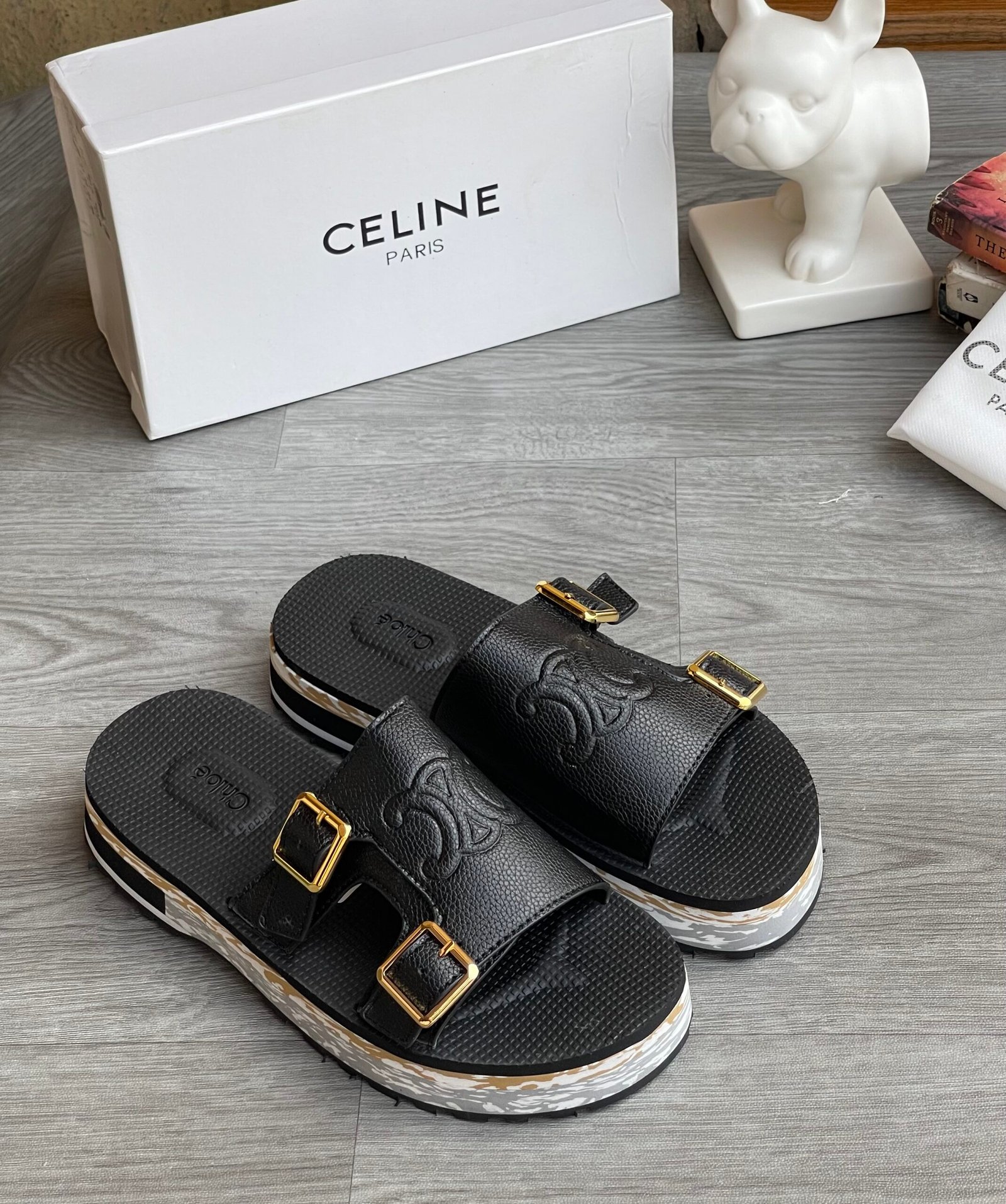 Double-straps chloe leather sandals black
