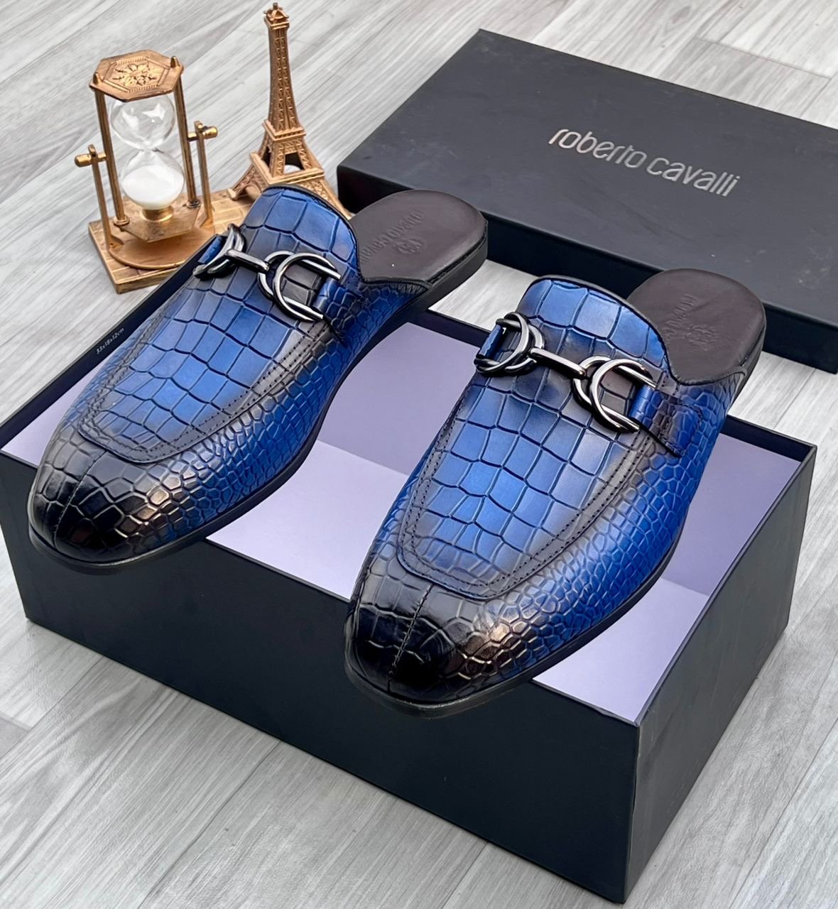Home half-shoe Roberto cavalli men’s crocs leather mules blue